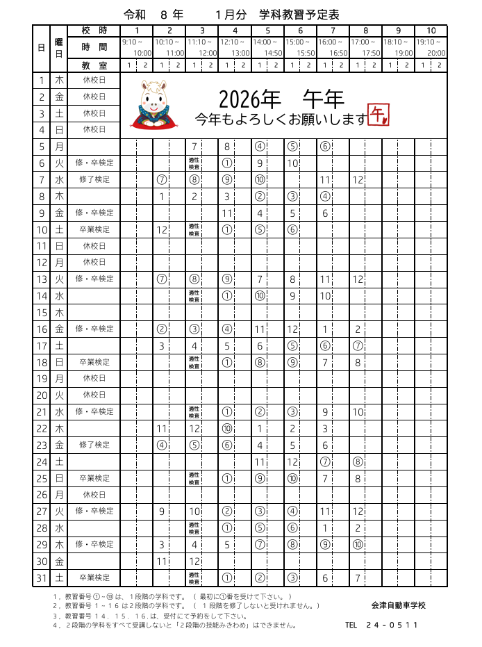 ※夏休みや冬休みなど、学生さんの休み期間は技能教習の予約が取りづらい事もありますので