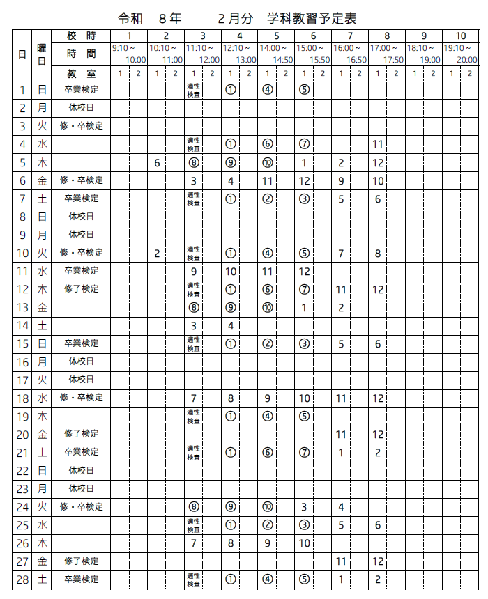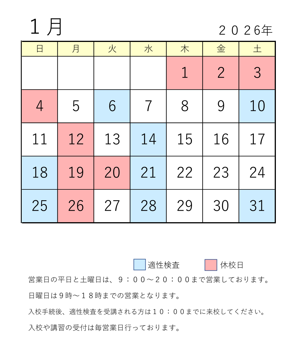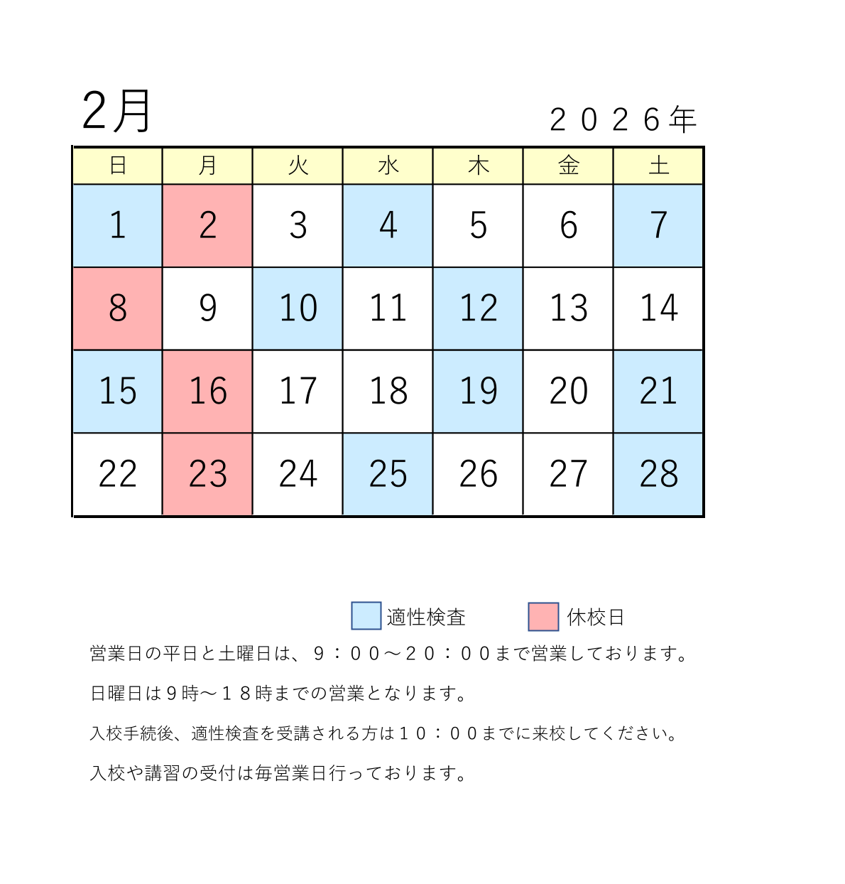 ・適性検査がある日に入校して頂けますと、入校手続から適性検査までがスムーズです。